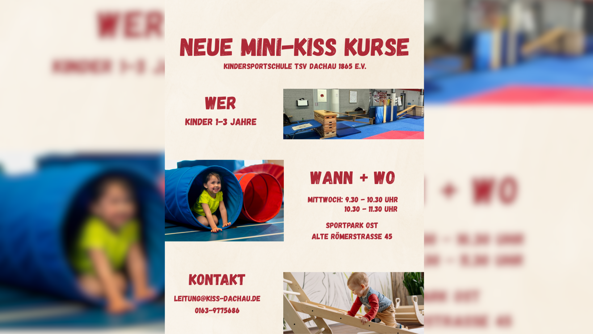 Ab sofort finden auch am Mittwoch zwei neue Vormittagskurse für unsere ganz kleinen Sportler in der Römerhalle (Alte Römerstraße 45) in Dachau Ost statt.
