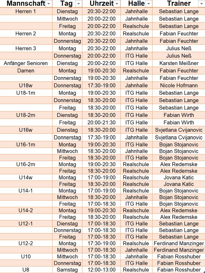 Trainingszeiten