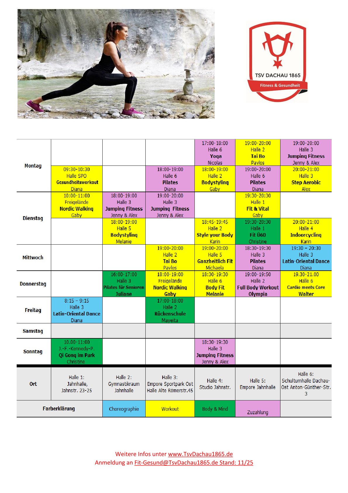 Rückenfit - Eine sportliche, gesunde Stunde mit den Schwerpunkten Wirbelsäulengymnastik (Dehnung, Kräftigung – speziell für die Rumpfmuskulatur), Ganzkörperkräftigung und Verbesserung des Herz-Kreislauf-Systems.