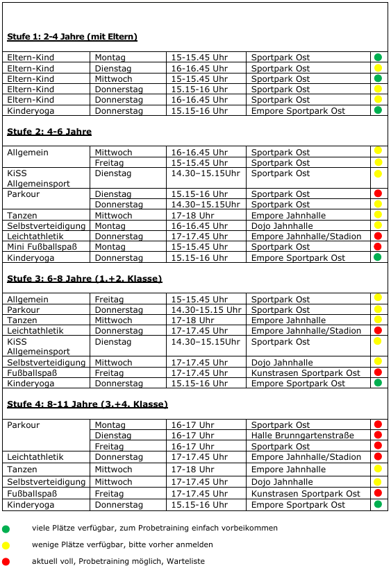 Die Kindersportschule hält sich mit den Trainingszeiten an die Schulzeiten. In den Ferien findet dementsprechend kein Training statt. Es gibt dafür häufig tolle Ferienangebote!